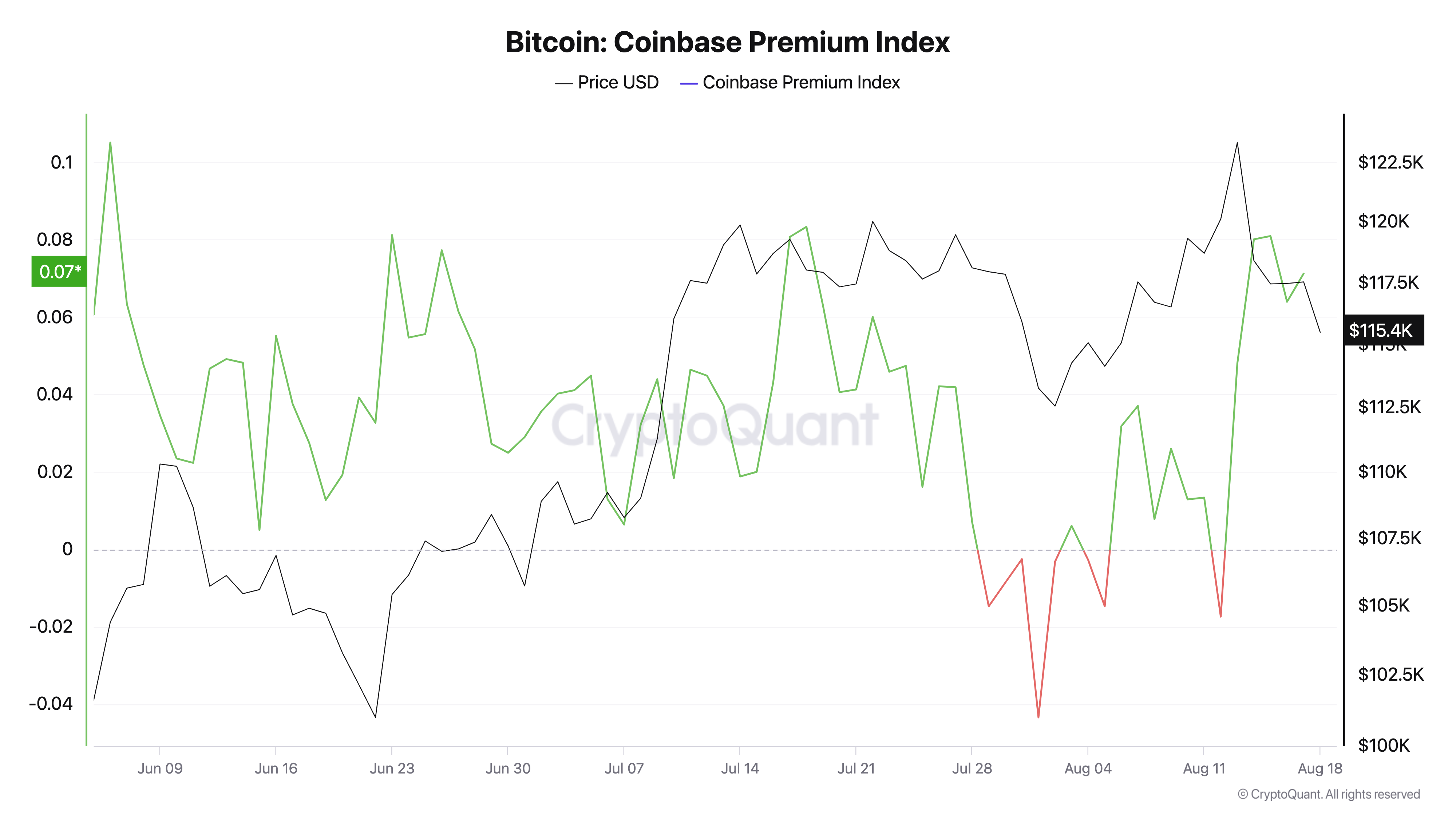 Coinbase Premium, Coinbase ve Binance BTC/USDT'nin BTC/USD eşitliği ile bu hafta pozitif alanda BTC fiyat farkını ölçer.